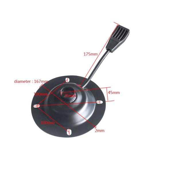 | Material: iron plate molding Color: Black spray Specification: Diameter 160mm Mounting hole: 100X 100mm Wall thickness 2.0mm Function: lift and rotate | |