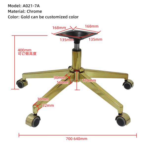 With a diameter of 640mm to 700mm, this base is designed to fit a variety of chair sizes, making it versatile and compatible with different types of office chairs. The golden color of the base adds a luxurious touch to your chair, but colors can also be customized to suit your personal preferences and style.